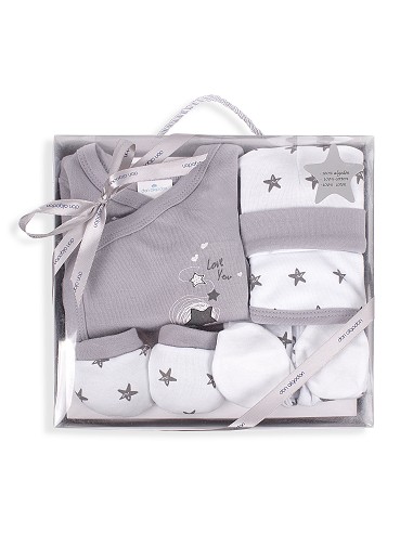 Set Regalo 5 Pzs 100% Algo Talla 0-6 Mod. Love You Gris