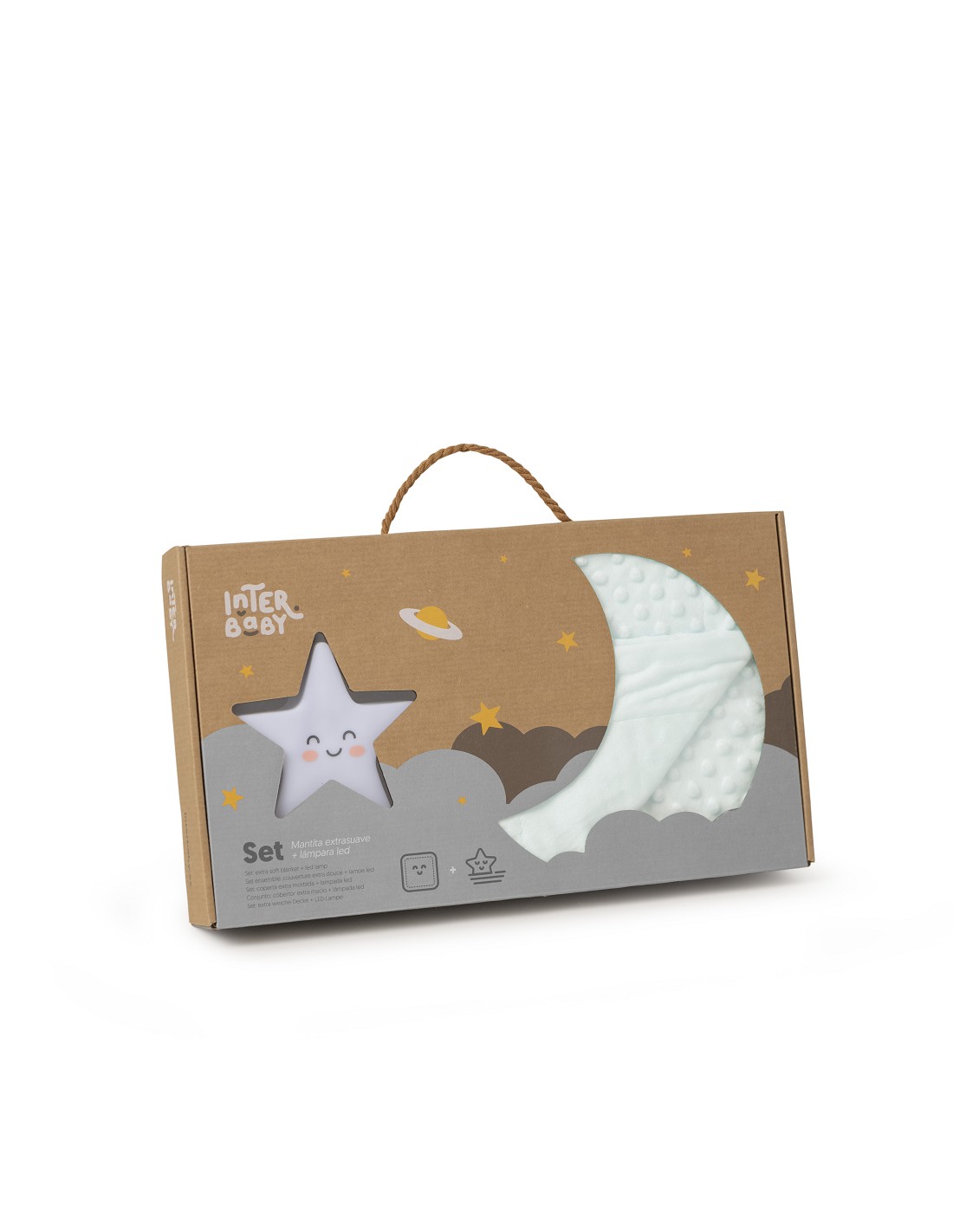 Set Manta de terciopelo para cuna acabado en burbuja y borreguillo. Fabricado en microfibra de alta calidad para dotar a tu bebé de una sensación térmica muy agradable. Dudu a juego y peluche para acompañar a tu bebé.