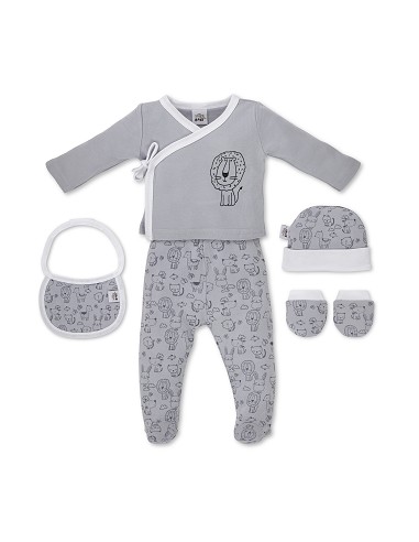 Set Regalo 5 Pcs 100% Alg  T 0-6 m Mod Animalitos Gris