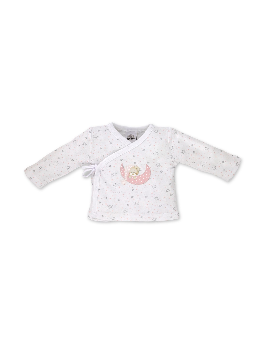 Compuesto por gorro, camisa, polaina, manopla y babero.Edad 0-6 meses.