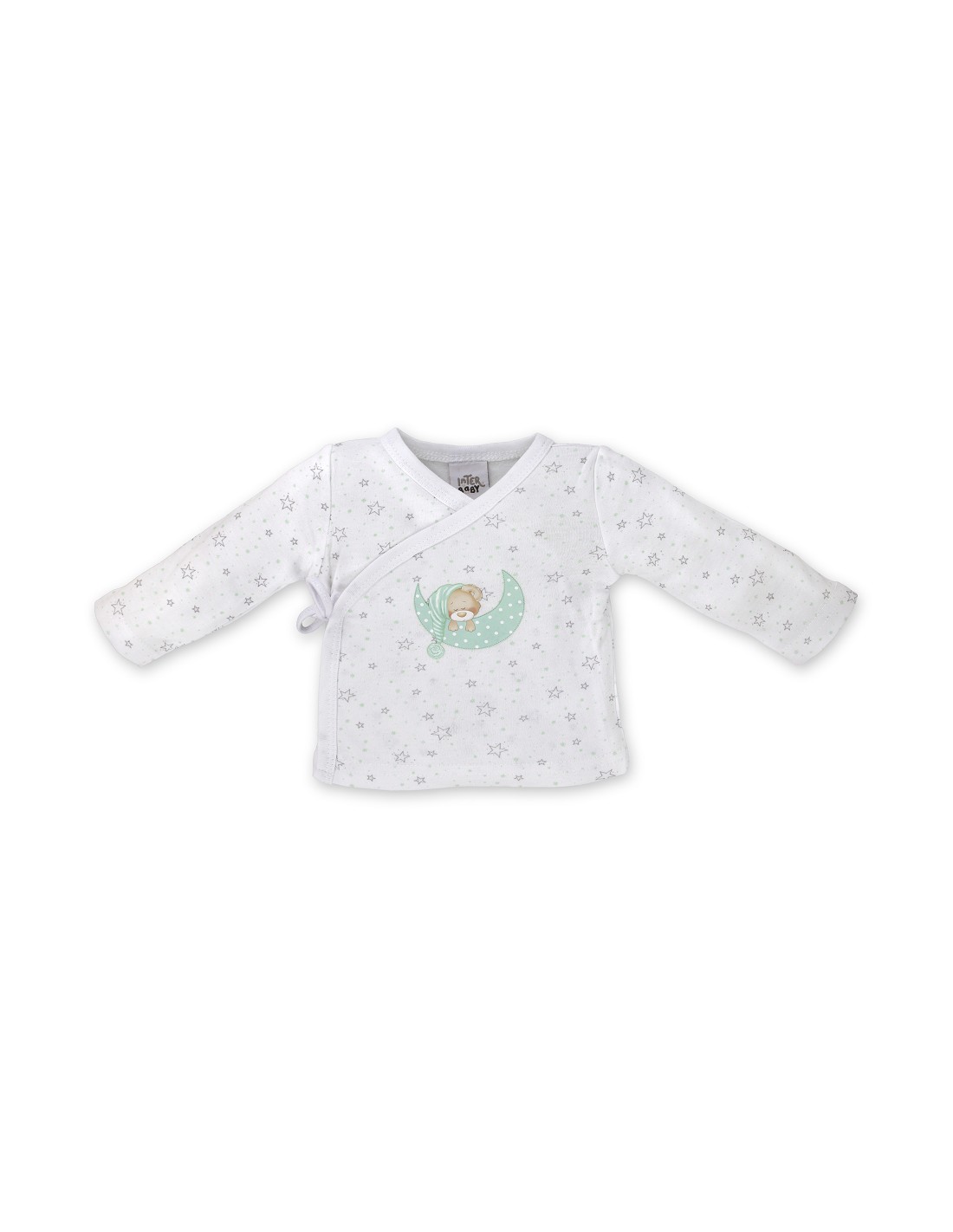 Compuesto por gorro, camisa, polaina, manopla y babero.Edad 0-6 meses.