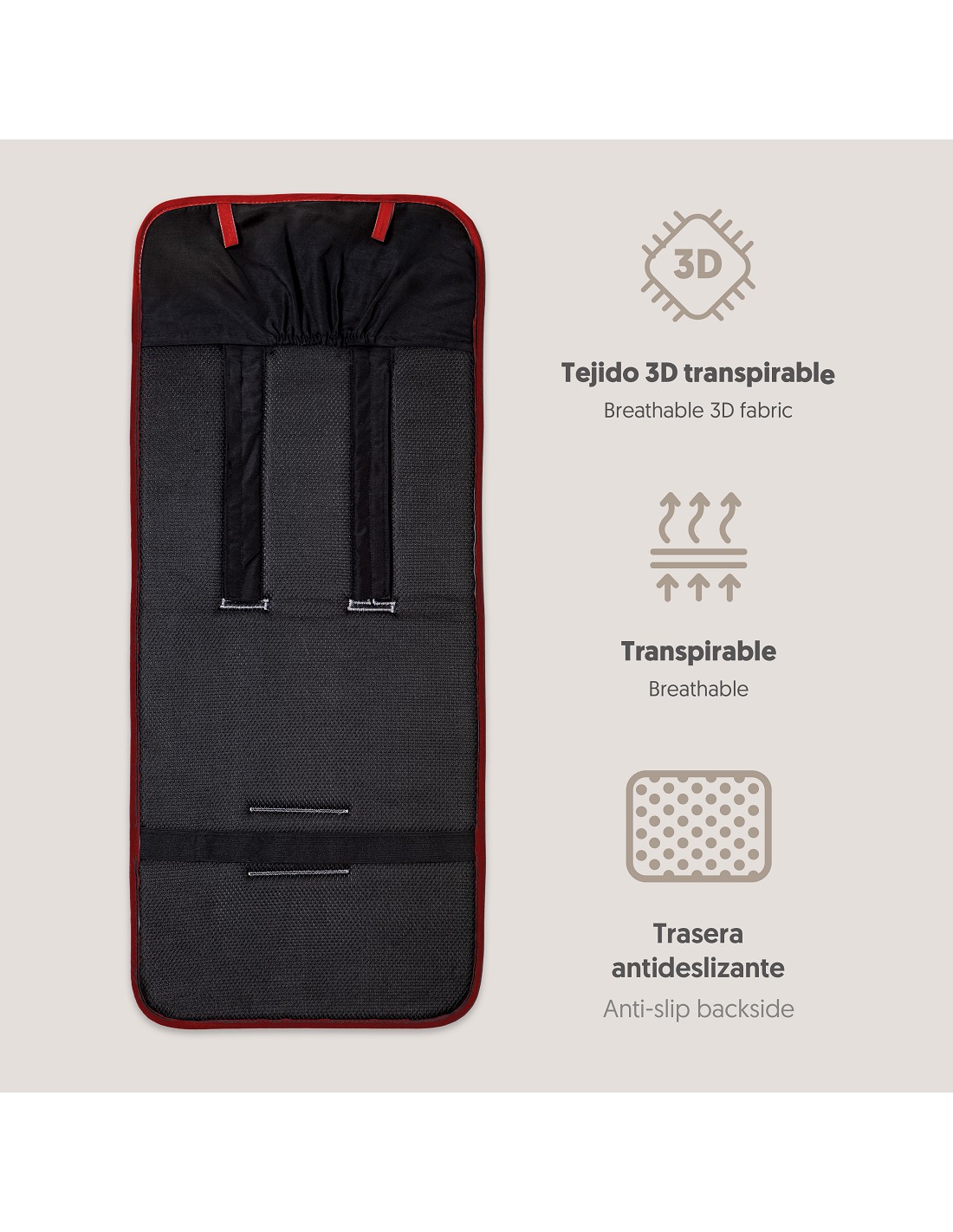 Colchoneta para silla de paseo universal transpirable + protector de cinturón. Tejido 3D transpirable. Fabricado con la última tecnología para mantener fresco y seco a tu bebé. Adaptable a cualquier silla de paseo.