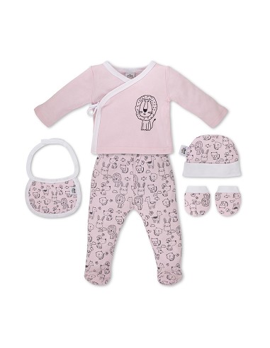 Set Regalo 5 Pcs 100% Alg T 0-6 m Mod Animalitos Rosa