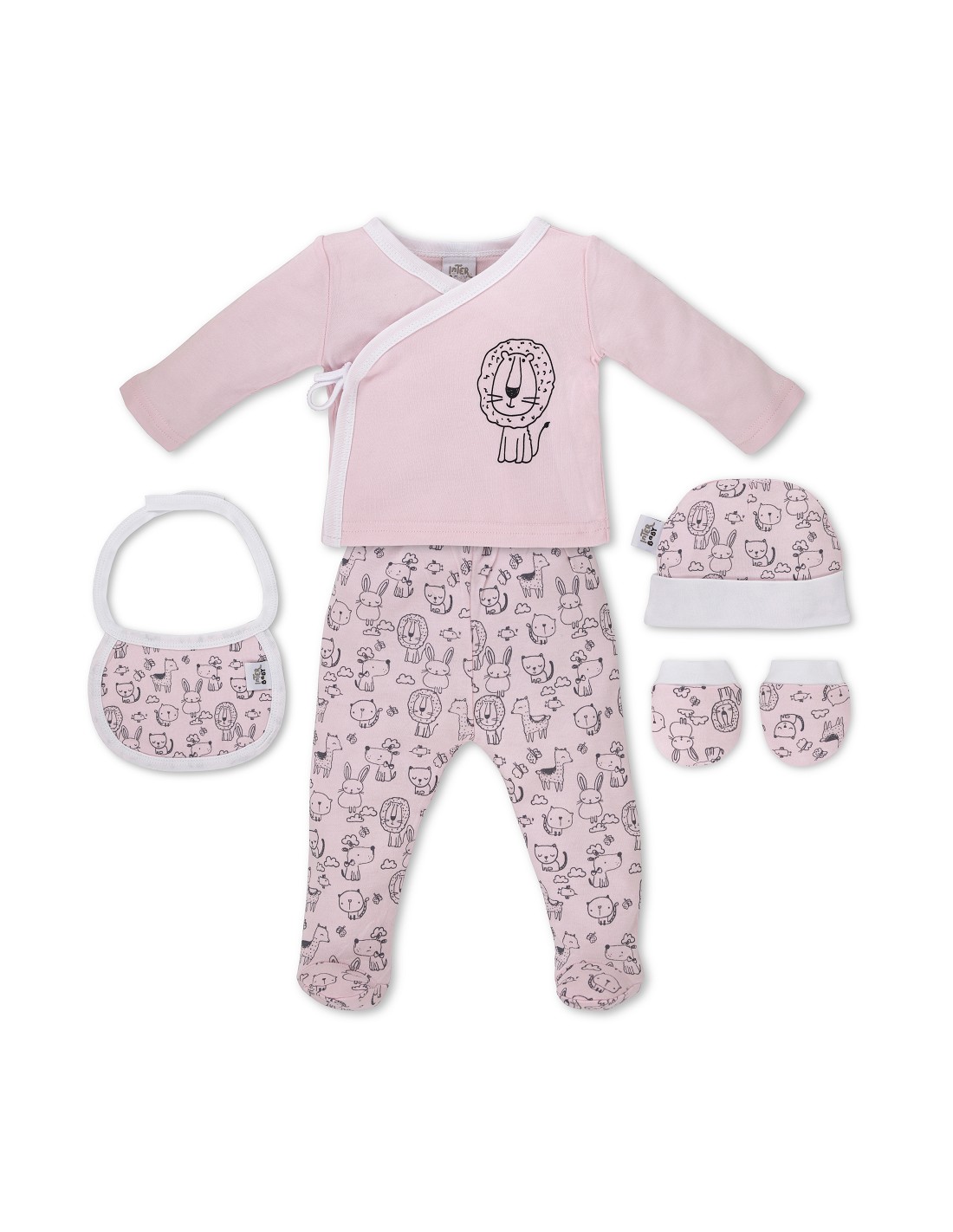 Set Regalo 5 Pcs 100% Alg  T 0-6 m Mod Animalitos Rosa