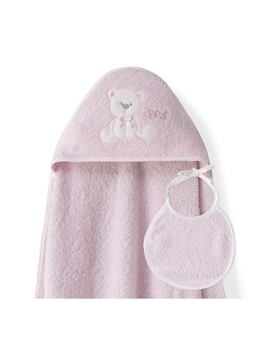 Capa Baño 1X1 Mod Oso Lazo+Babero Rosa