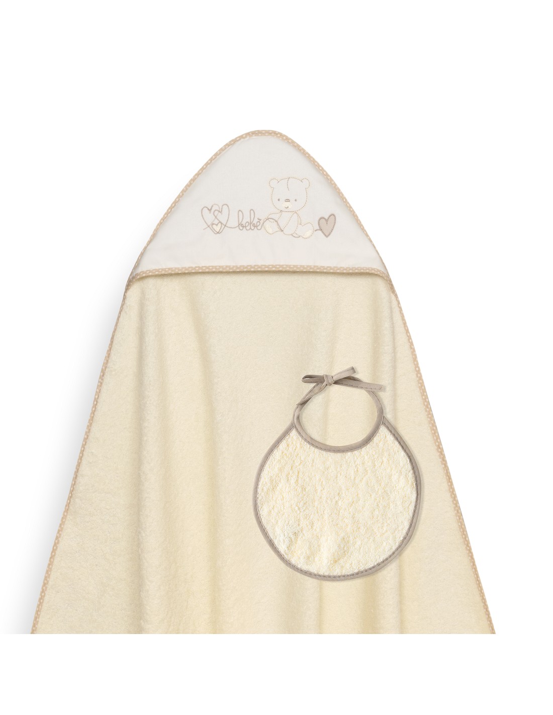 Capa Baño 1X1 Mod Corazones Bebe Osito+Babero Beig