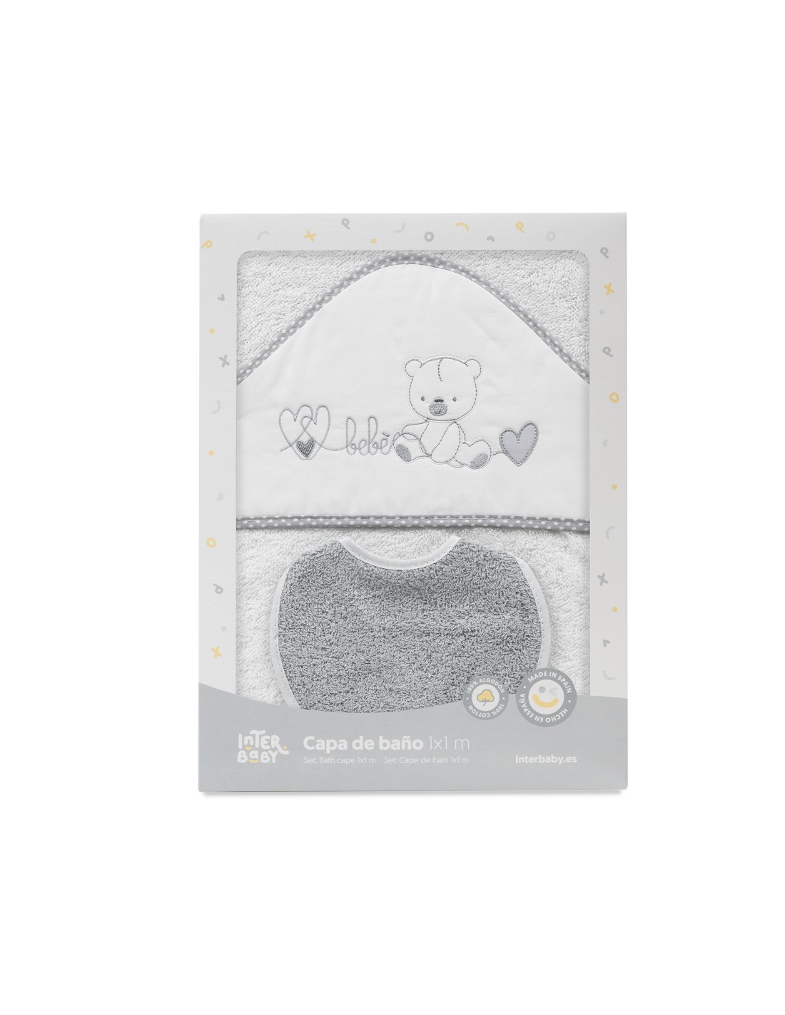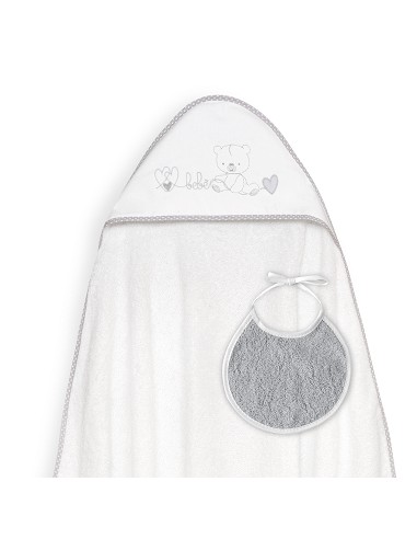 Capa Baño 1X1 Mod Corazones Bebe Osito+Babero Bco/Gris