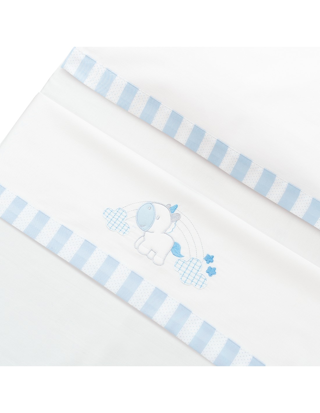 Compuesto por encimera (72 X 114cm) , bajera (40 X 80 cm) y funda de almohada (40 x 25 cm). 100 % algodón. Lavar en frío.