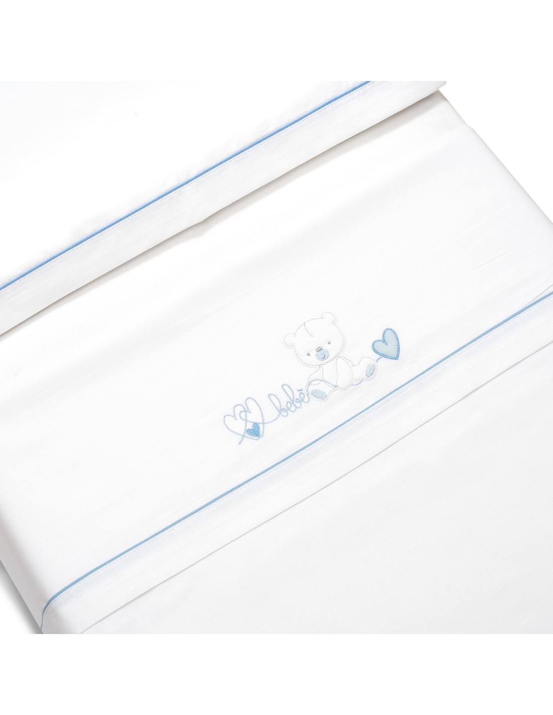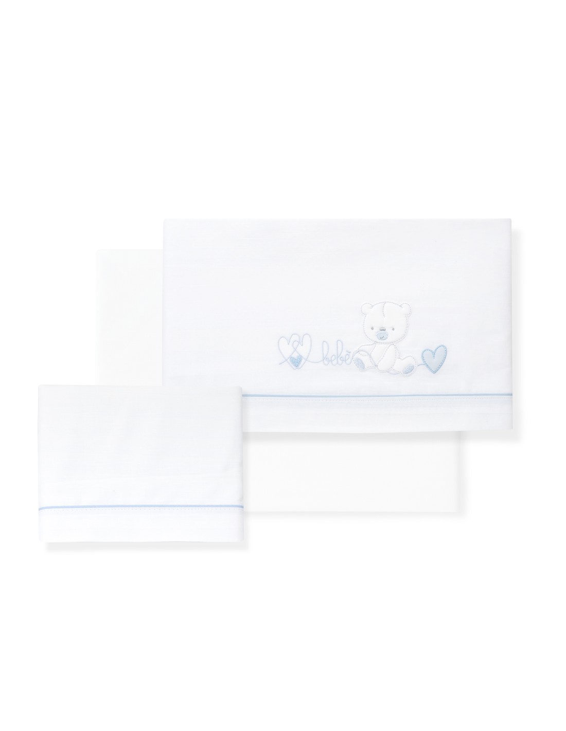 Compuesto por encimera (72 X 114cm) , bajera (40 X 80 cm) y funda de almohada (40 x 25 cm). 100 % algodón. Lavar en frío.