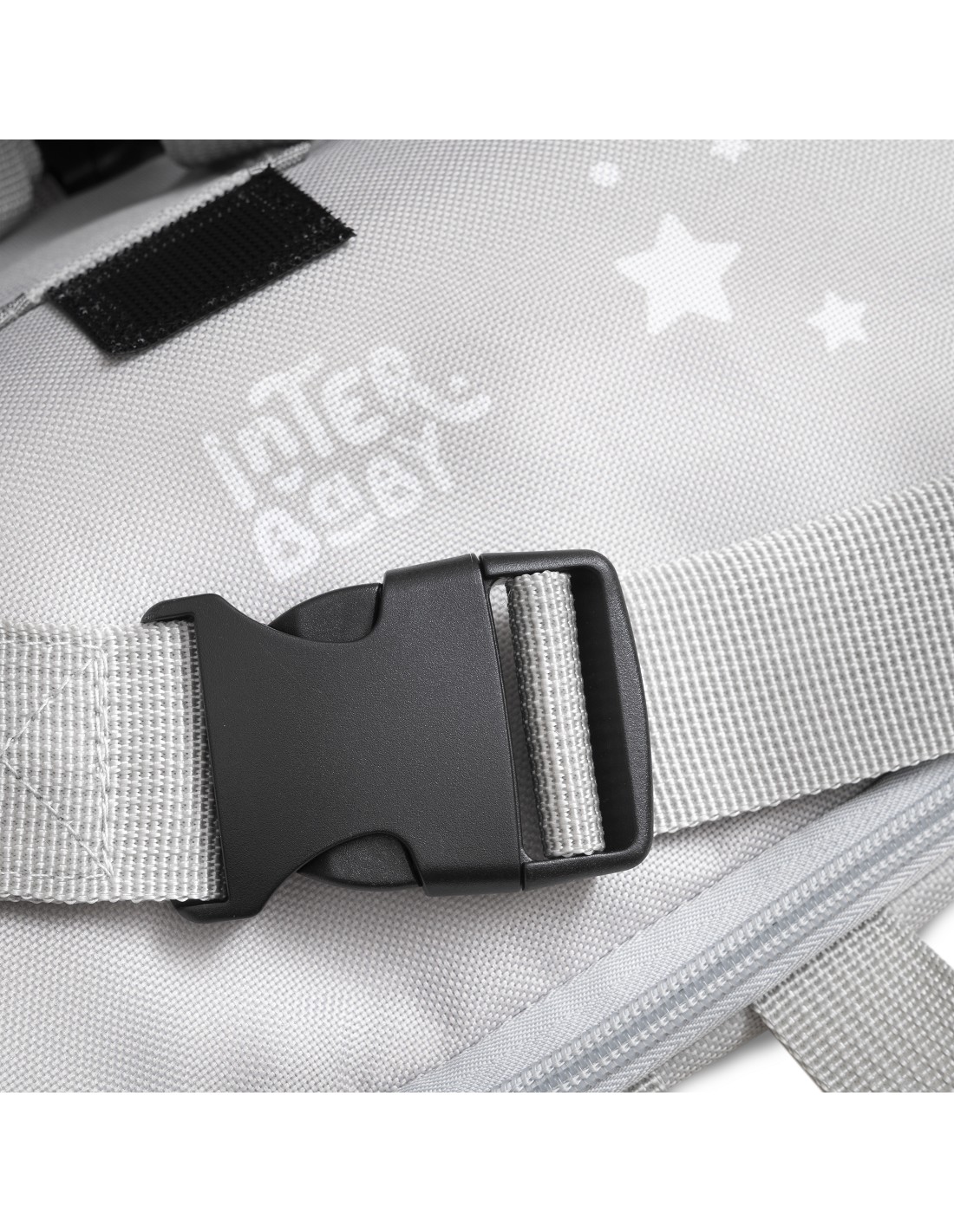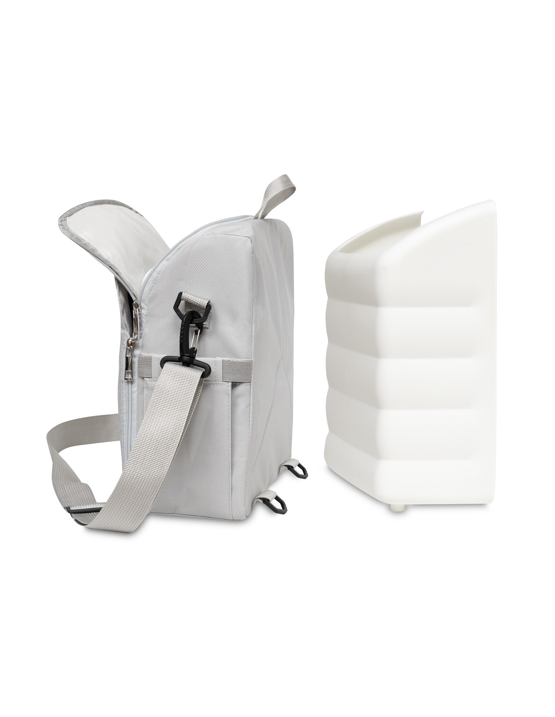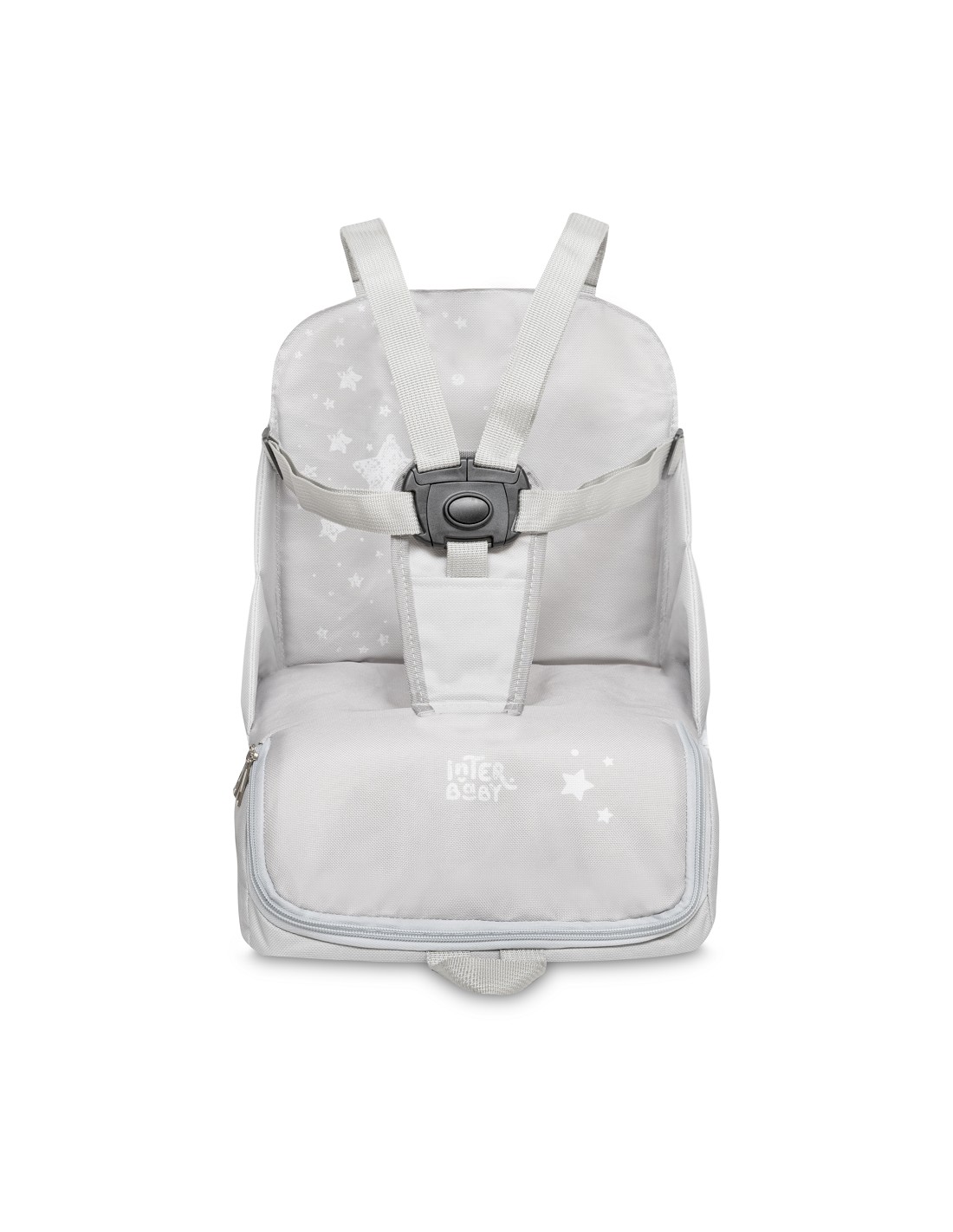 Trona de Viaje. Covertible en mochila o bolso. Plegable , ligera y con asa reguladora para transportarla. Arnés de seguridad de 5 puntos ajustables. Correas ajustables para acoplar a la silla. Compartimento de gran capacidad. Bolsillos interiores y laterales. Totalmente desenfundable. Recomendado de 6 a 36 meses o un máximo de 15 kg de peso.