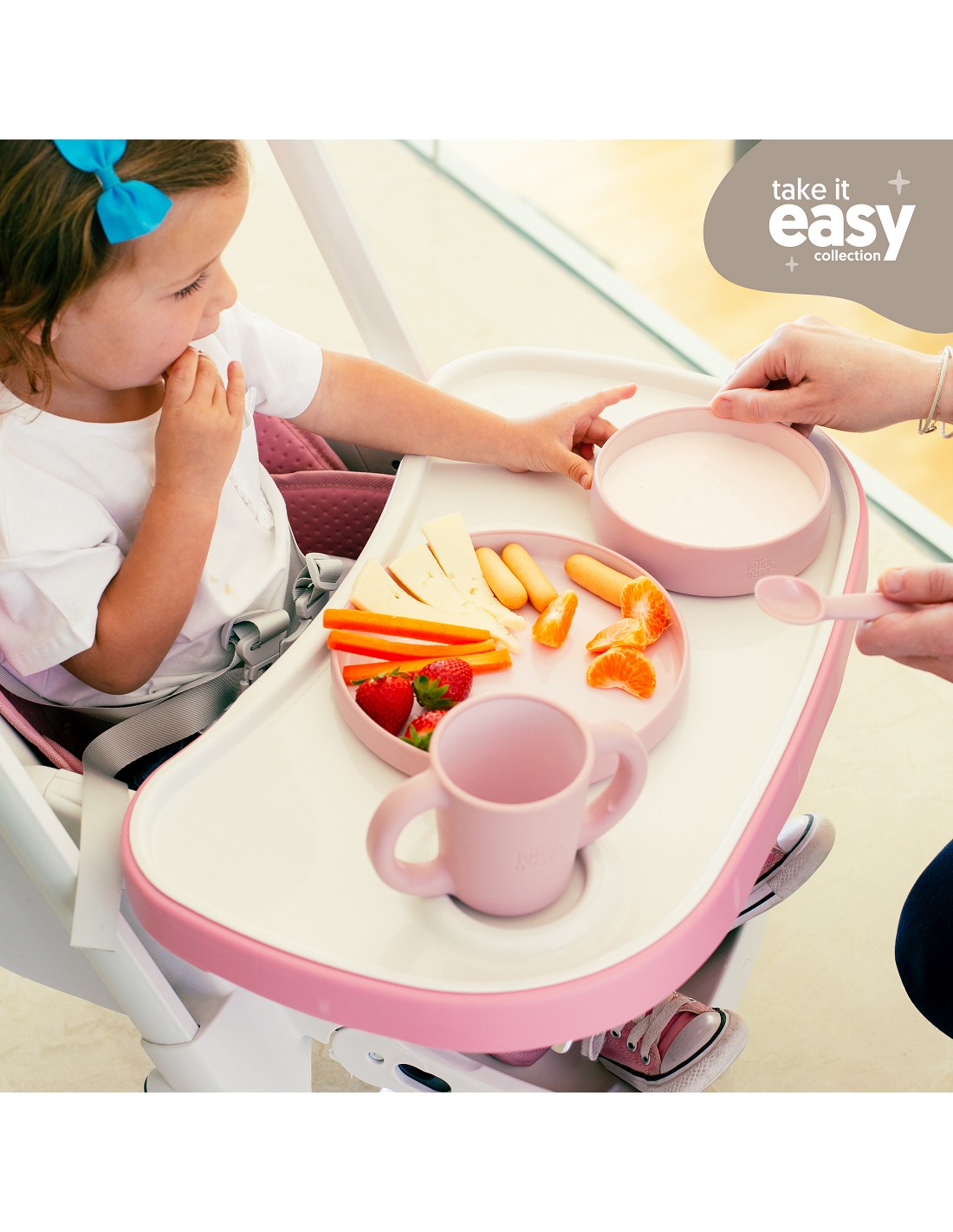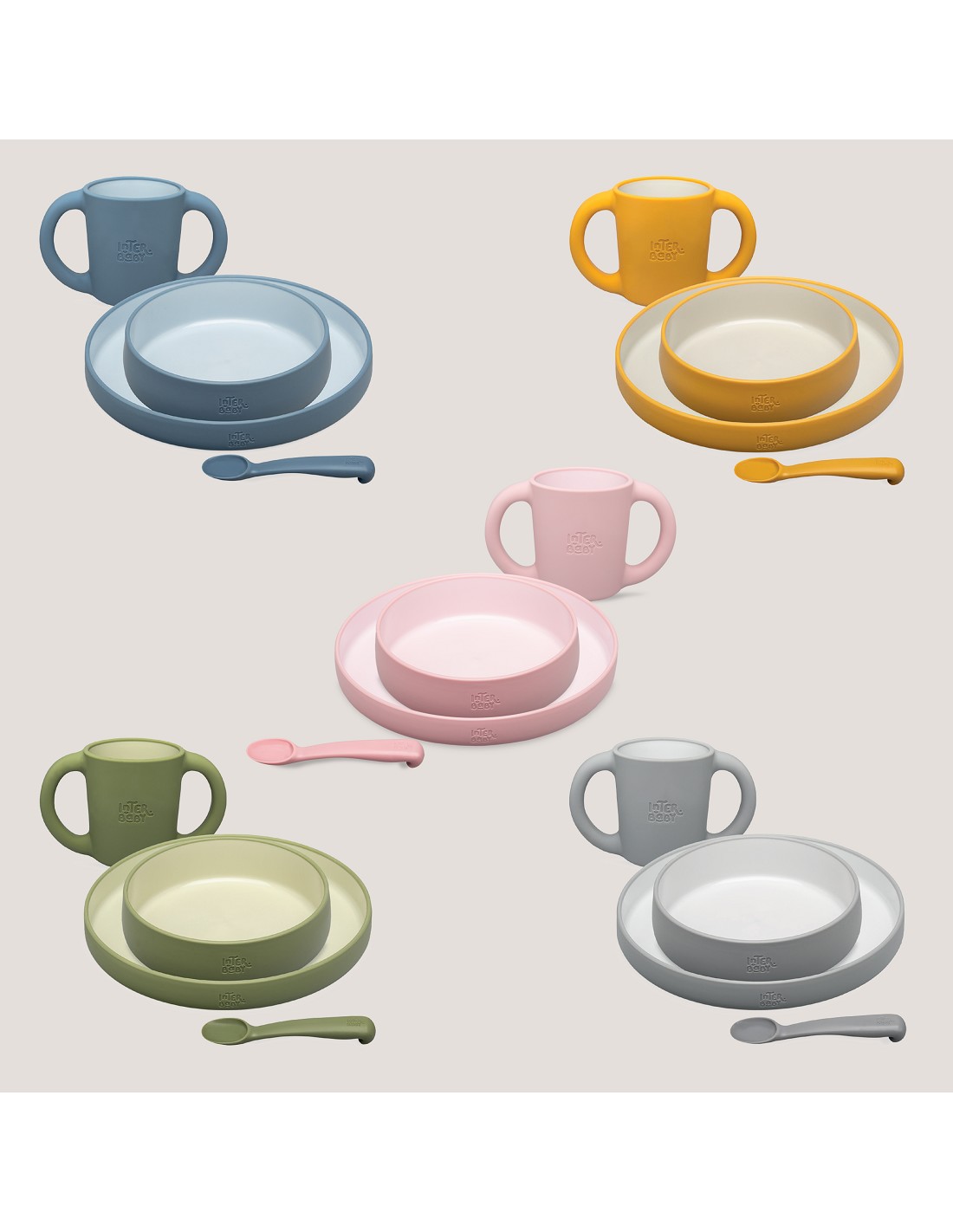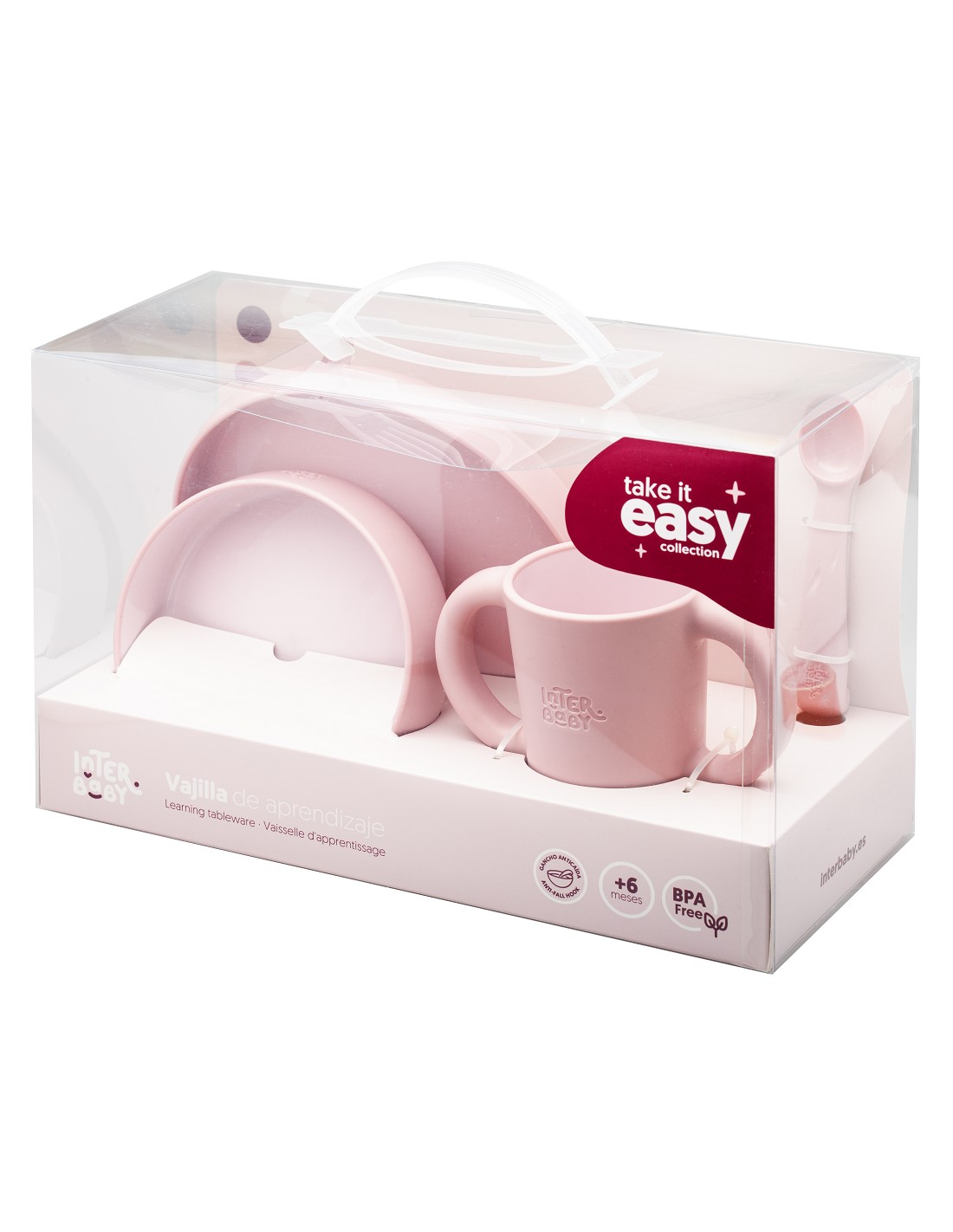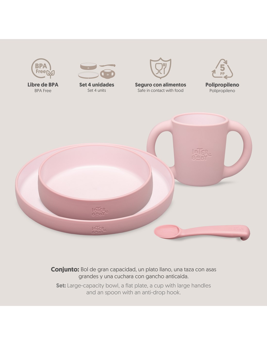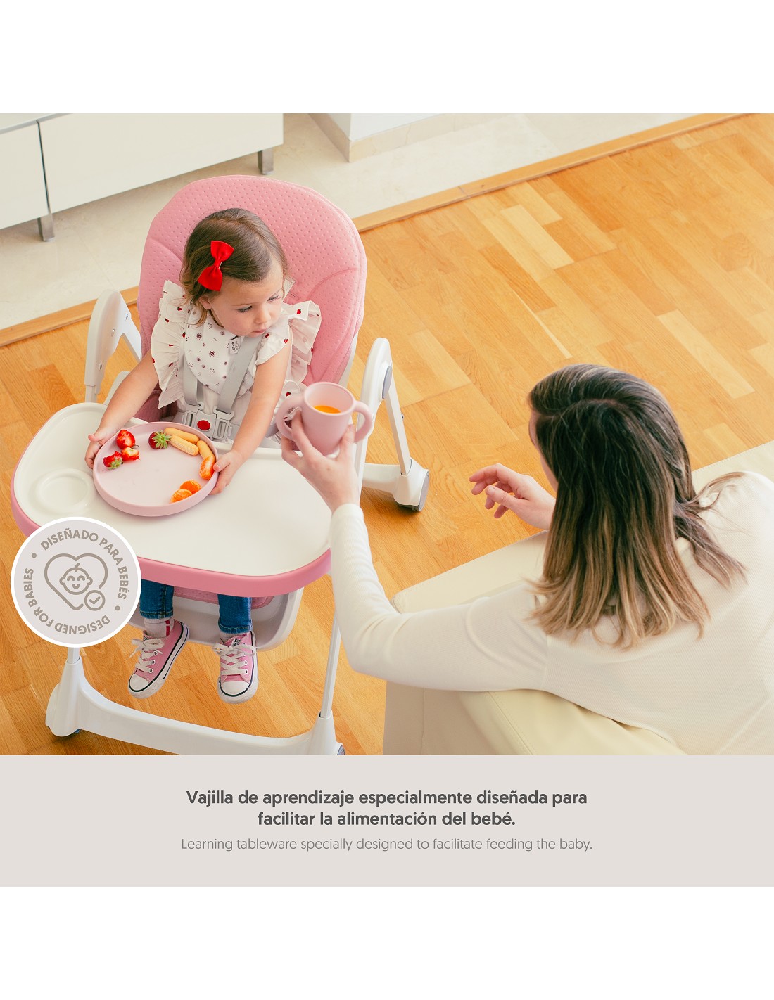 Vajiila de aprendizaje apata para microondas y lavavajillas. Pilipropileno libre de Bisfenol . Apta para temperaturas desde los -20ºC a los 120ºC. Contiene Plato llano, bol, cuchara y taza. Apto para mayores de 6 meses de edad.